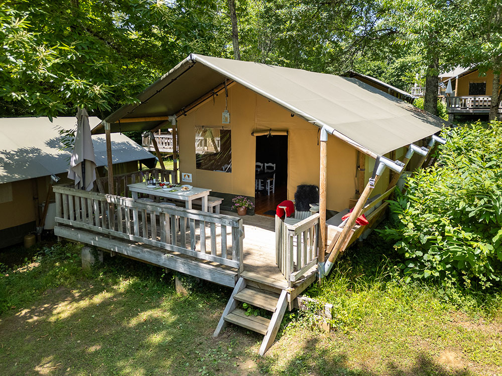 Guests can choose from modern mobile homes, charming gîtes or luxurious glamping safari tents. Each spot is thoughtfully arranged and offers plenty of shade and privacy.